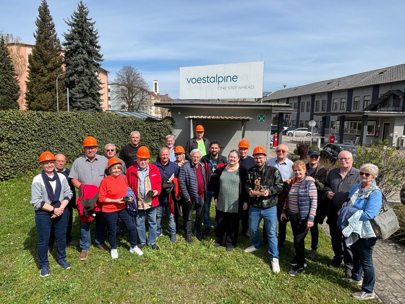 dem Betriebsbesuch der Voestalpine Giesserei Traisen. Bei der Ankunft begrüßte Erich Deingruber die Gäste vor dem Werktor und führte sie anschließend zum Sitzungssaal der Arbeiter – Betriebsräte. Vorsitzender Erhan Gürbüz hieß die Delegation mit einem Frühstück herzlich willkommen und informierte mit einer Power Point über die Produktion im Werk Traisen.